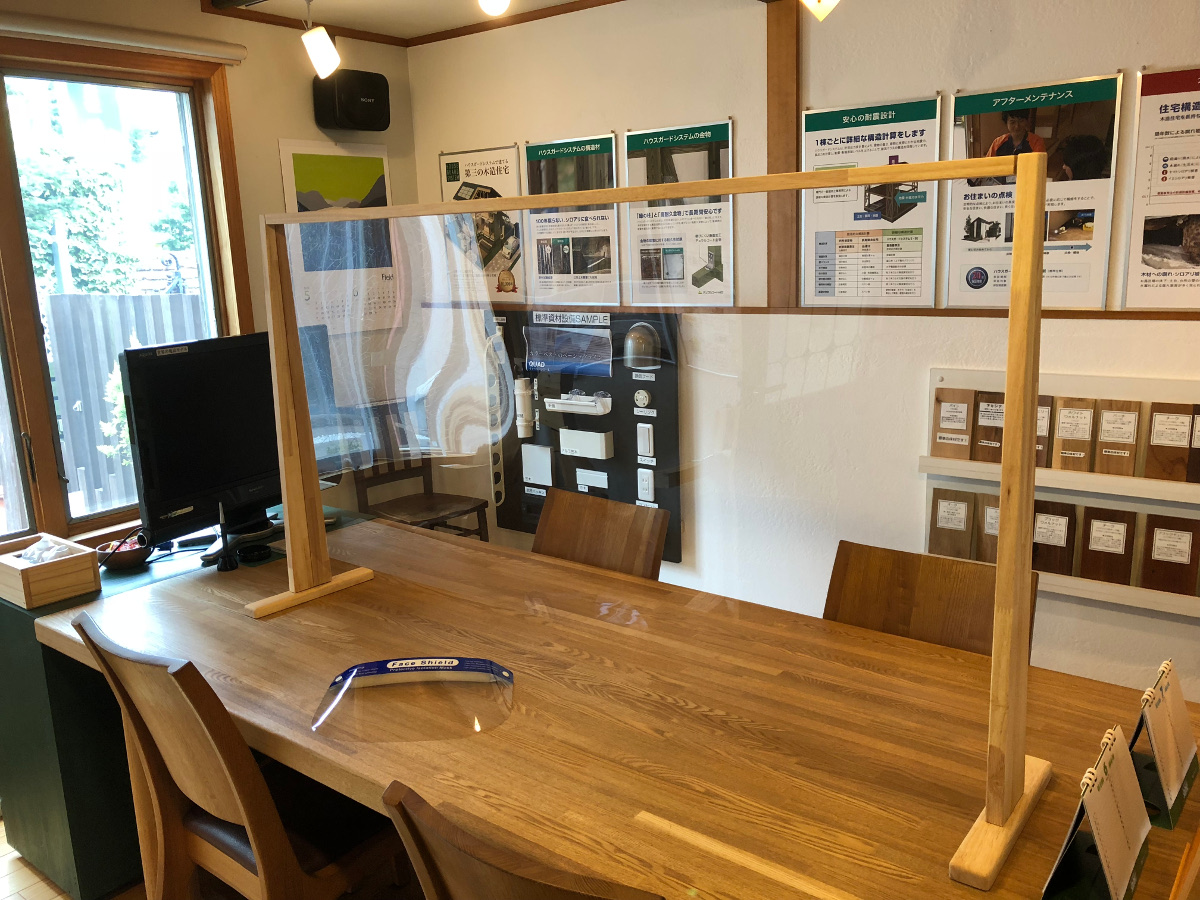 サンキホーム弐番館の打合せ室にも飛沫防止パネルを設置しました。
