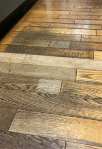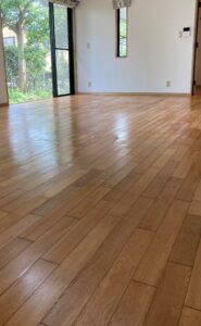 築25年の住宅で無垢フローリング表面を削り自然素材のオスモカラーでクリア塗装をしました。