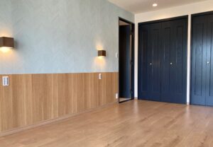 主寝室はホテルのような雰囲気にしたいとのご要望を頂き、壁はクロスでアクセントをつけお施主様も要望通りに仕上がり大変喜ばれておりました。