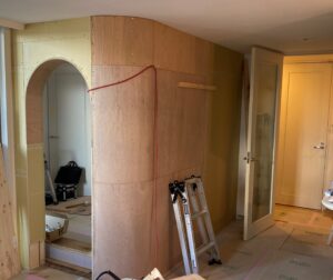 Rの丸みを帯びた壁にこの後漆喰を施工していきます。