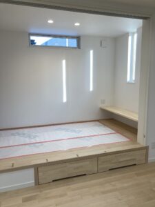 BLOG ブログ 2021.02.20 未分類 竣工が近付いてきました 「鵠沼海岸の家」 階段手摺をつけました。 アイアンです。 色はこれからですが、楽しみです。 別の現場では施主検査も終わり、竣工が近付いてきました。 小上りの畳の部屋。 下は収納です。 畳はお引渡前に敷きます。 前へ ブログ一覧へ 次へ
