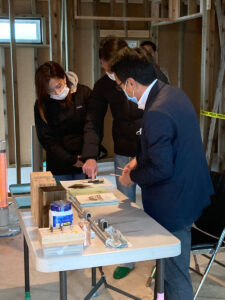 ① 当社の建物の構造(基礎・柱や土台といった構造材・耐震金物・断熱・サッシ等)を、実際にお施主様が建てられている等身大の建物をご覧になる事によって、ご理解していただく場。