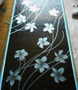 お客様からリビングドアにハワイアンな装飾をしてほしいといわれ、