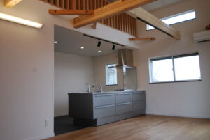 本日ご紹介させて頂きます建物は、お客様のご要望が『2階リビングでなるべく天井を高く取り、更に大きなロフトを設置したい』との事でした。