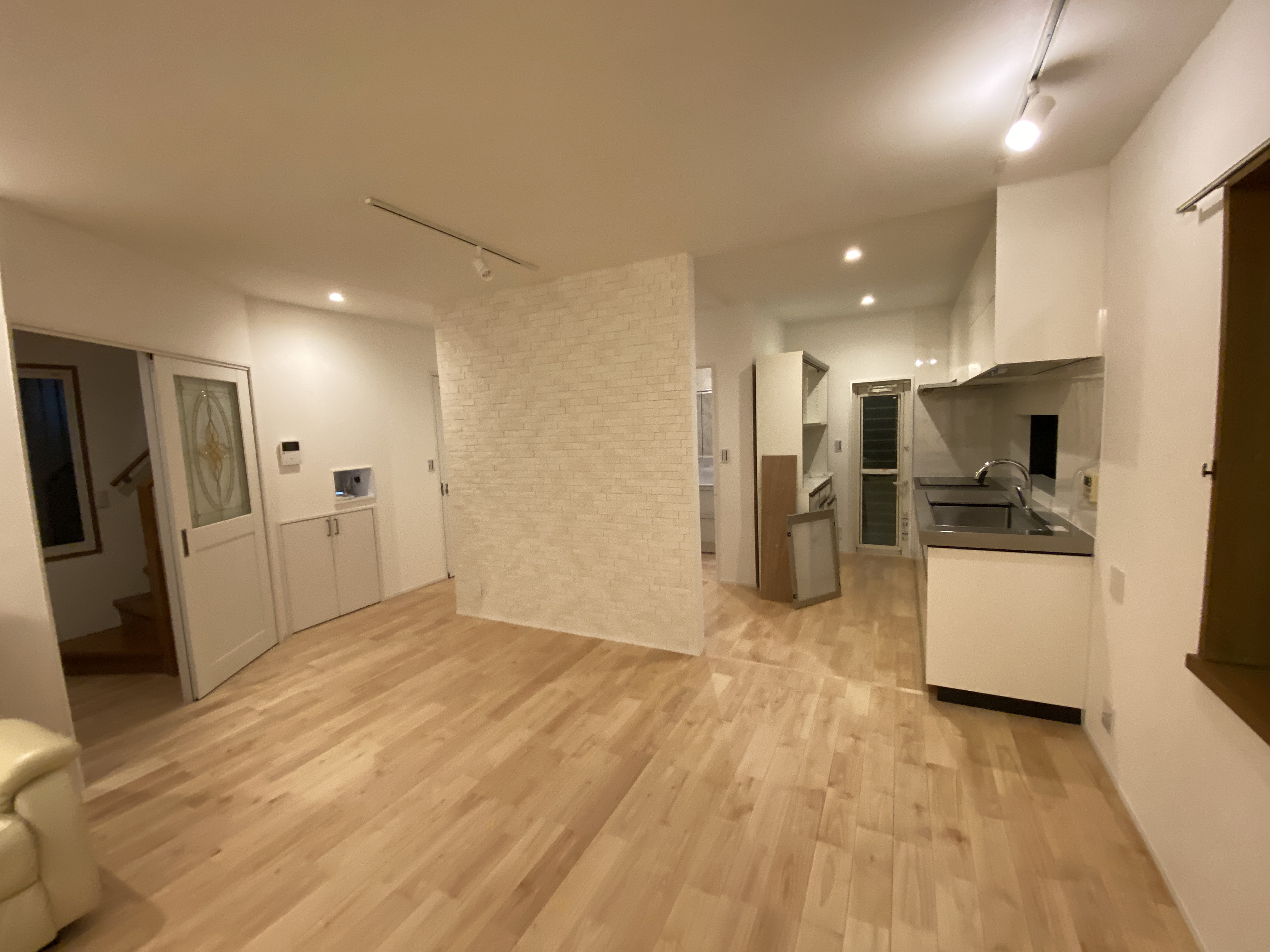 今回は鉄骨造戸建てに床に上から無垢のメープル材を貼り、エコカラットを貼りました。また、見えないところですが、窓ガラスを真空ガラスにかえ、床下にセルロース断熱をいれ、断熱性能をあげております。