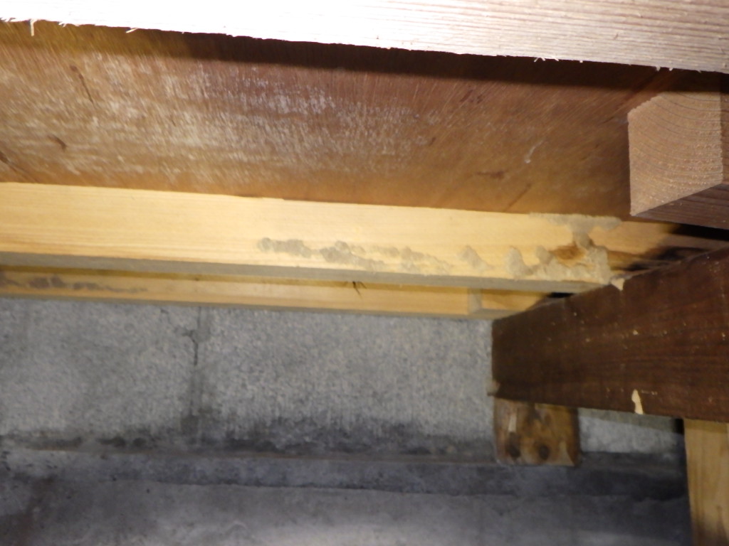 さて春先にかけてお家の中で点検することが必要な箇所の一つに床下の状況がございます。先日木造住宅の一階洗面室の床下状況の点検をする機会がありましてその際にシロアリのいた形跡が見受けられました。
