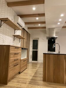 BLOG ブログ 2025.03.06 トピック 構造化粧梁 LDK天井に施した天井部の化粧梁です。 2階を支える構造梁を化粧して梁成の 半分ほど見せています。 梁を現すことで天井を高くでき、大きな空間を 構成することが可能です。 キッチンレンジフードの排気ダクトも考慮した デザインに仕上げました。 湘南地域で新しい住まいや自然素材 (漆喰や無垢材など)の家づくりを お考えの方は是非サンキホームまで! お問合せをお待ちしております。 前へ ブログ一覧へ 次へ
