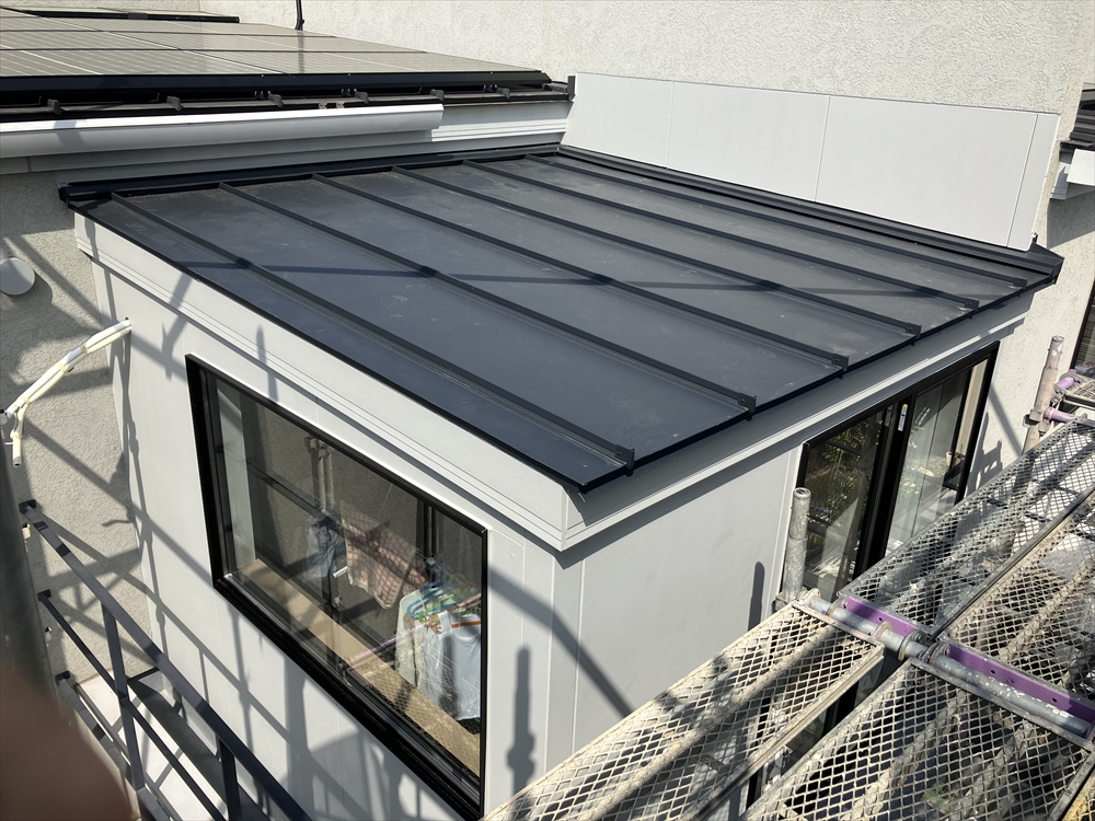 画像は、工事途中完成直前、雨どい取付工事前です。