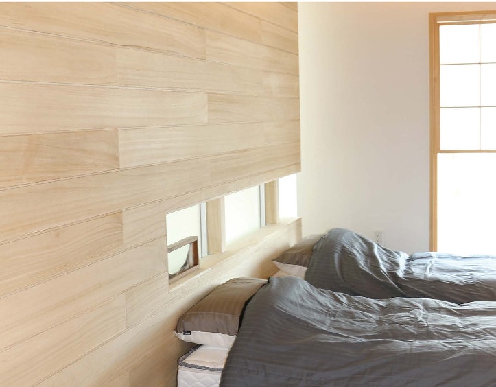 BLOG ブログ 2025.04.25 トピック 木パネル 真っ白になりがちな壁面ですが、柄のある壁紙や塗り壁の鏝跡、絵画を飾るなど アクセントを加えると部屋が華やかになります。 壁面に木が張られたお部屋も素敵です。 写真は桐を貼ったお部屋。桐は柔らかく、触っても温かみを感じ調湿効果も高い木です。 良質な睡眠が取れそうですね。 興亜通商カタログより 前へ ブログ一覧へ 次へ