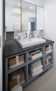 BLOG ブログ 2025.05.05 トピック オリジナル化粧台 洗面器具とミラーボックス、造作棚台を 組合せたオリジナルの化粧台です。 ミラーボックスとカウンターの間にも 鏡を取り入れることで、より部屋に 広がりが生まれます。 カウンター下にはたくさんの小物が 収納できます。 湘南地域で新しい住まいや自然素材 (漆喰や無垢材など)の家づくりを お考えの方は是非サンキホームまで! お問合せをお待ちしております。 前へ ブログ一覧へ 次へ