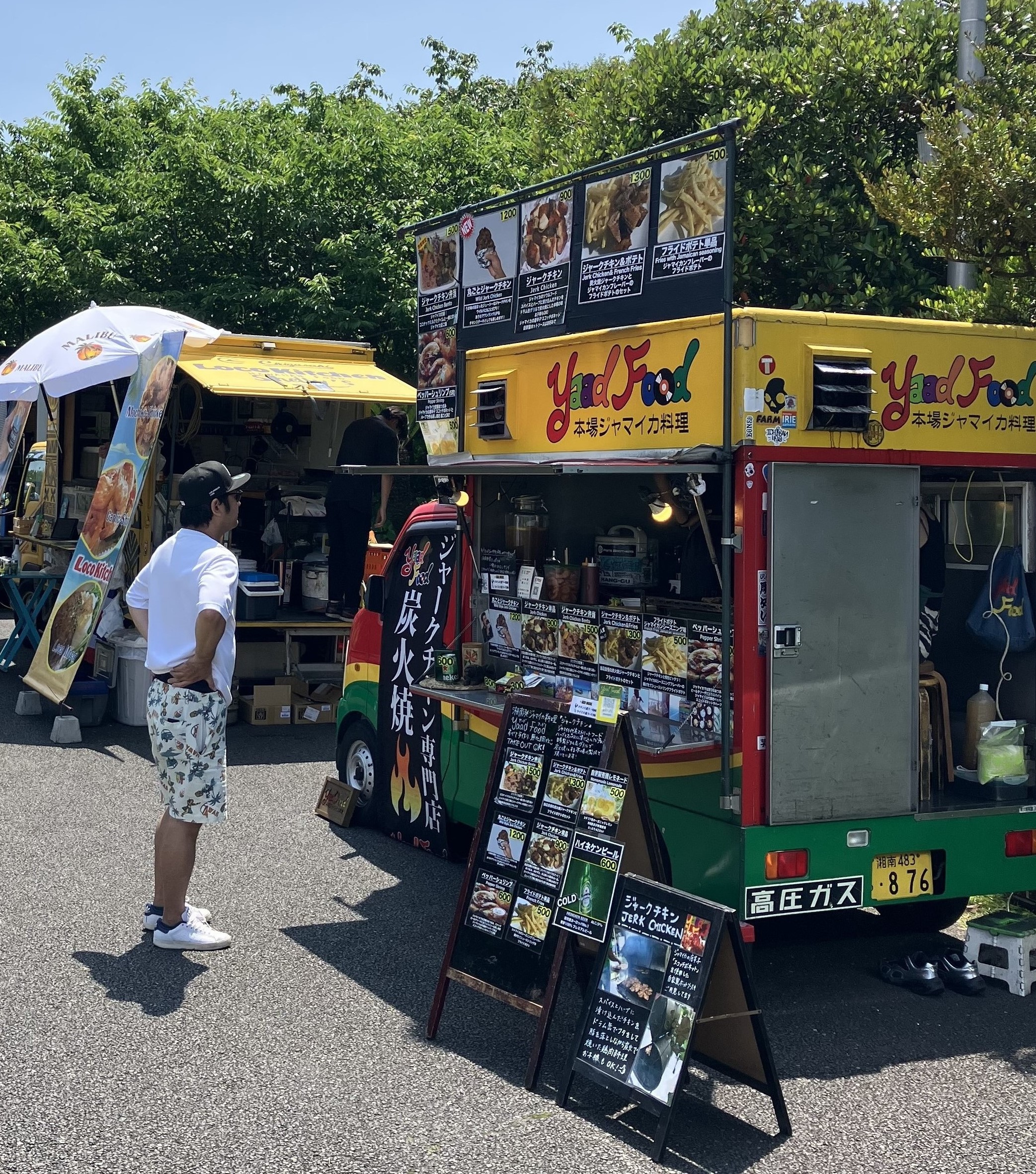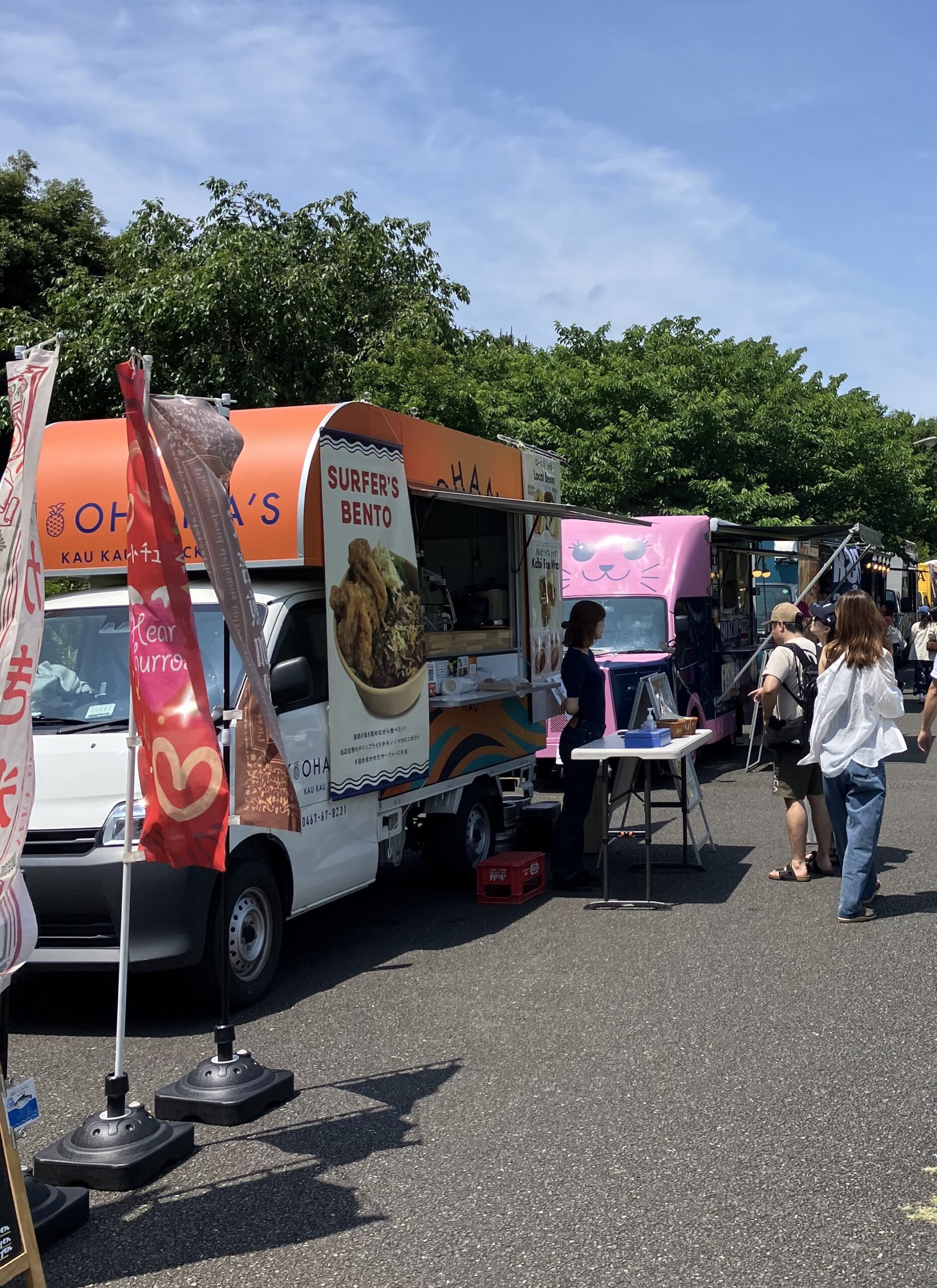 色々な種類の沢山のキッチンカーも出ていて、何を食べようか悩んでいらっしゃる方、この天気の下でビールを飲みながら楽しまれている方等とても賑わっていました!