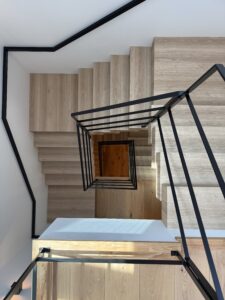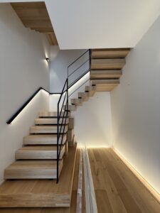 かっこいい階段にかっこいい手すり照明を造作で作りました。
