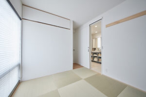 BLOG ブログ 2025.07.05 トピック 畳室 白い内装(天・壁)と共に建具まで白で 統一し、縁なし畳の部屋です。 天袋は跳ね上げタイプとし、金具は 見えないよう隠ぺいしています。 シンプルに拘ることで広さを感じさせます。 湘南地域で新しい住まいや自然素材 (漆喰や無垢材など)の家づくりを お考えの方は是非サンキホームまで! お問合せをお待ちしております。 前へ ブログ一覧へ 次へ
