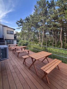 BLOG ブログ 2025.07.28 ウッドデッキ!!! 皆さん、こんにちは! 夏休みシーズンに突入しましたね! 梅雨も明け、猛暑が続いております。 前回も紹介しました、東海岸店の建物の裏のウッドデッキが更に過ごしやすくなりました! テーブルとイスを設置しました。 ウッドデッキは東向きですので、お昼過ぎになると全て日陰になり 非常に過ごしやすいです!! 是非、遊びに来てくださいね! サンキホームより 前へ ブログ一覧へ 次へ