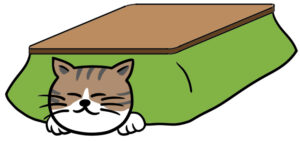 こたつ…いいのですが、入ると出たくなくなる→手の届く範囲に必要なものを置く→動かなくなる→太るを