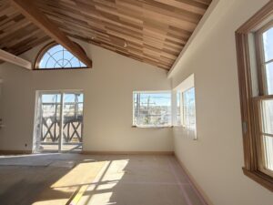 BLOG ブログ 2025.12.06 リフォーム現場もう少し もうじきリフォーム現場が終わります。 2階リビングの天井を勾配天井し、レッドシダーを綺麗に張り上げています。 程よい開放感のリビング。 コーナー出窓から優しい光が差し込んできます。 ここで楽しい会話を食事をすることを想像しながら、あと少しがんばります。 前へ ブログ一覧へ 次へ