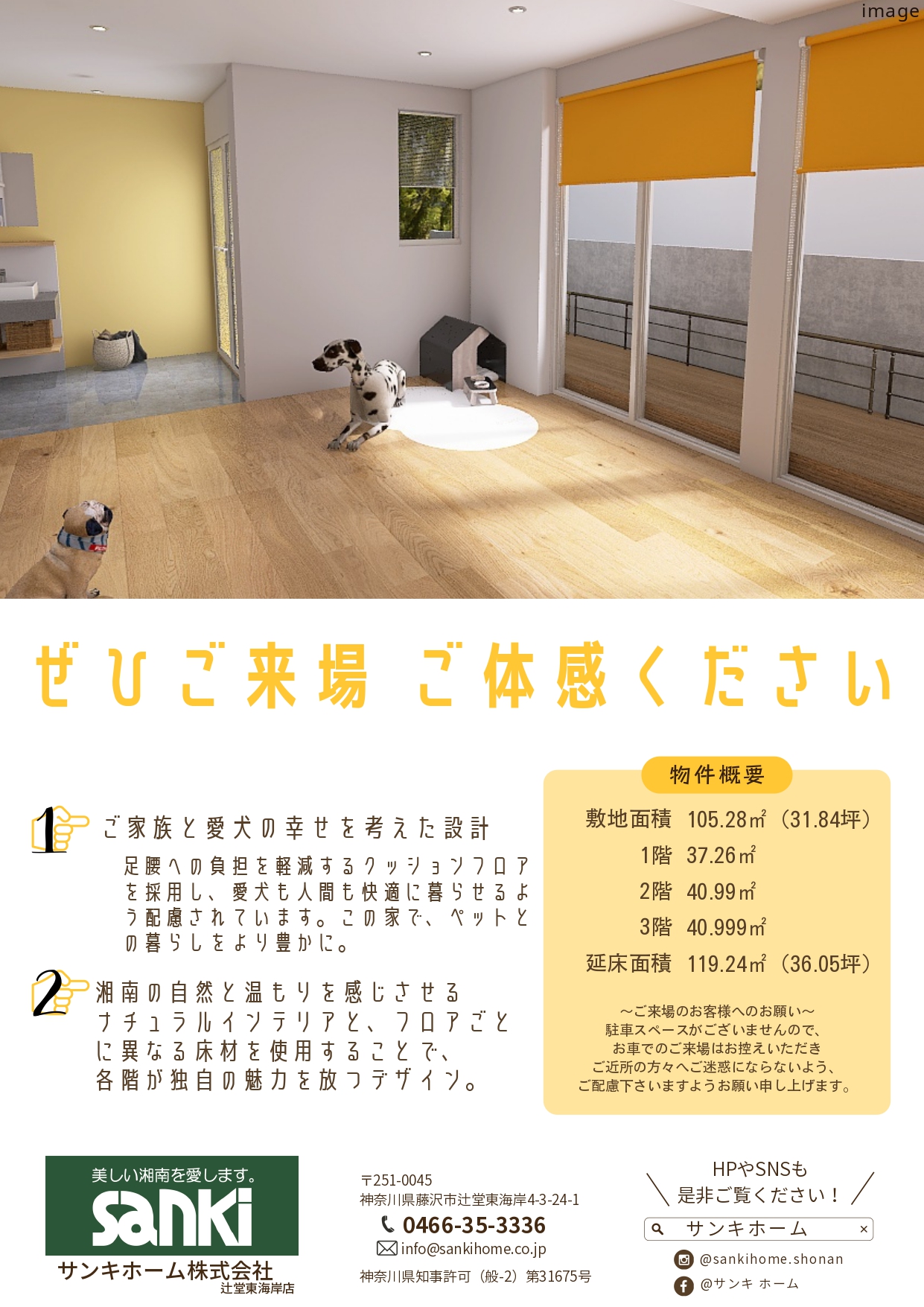 EVENT イベント イベント終了 5/25開催 完成前見学会のお知らせ 【開催日程】5月25日(土) 【開催時間】AM10:00~PM4:00 ※雨天決行 【会 場】藤沢市辻堂東海岸 ※完全予約制となりますので、ご希望の時間を予めご連絡ください。 ※ご予約いただいた方に、案内図を送付致します。 【開 催 枠】 10:00~13:00 13:00~16:00 ※予約状況はお問い合わせの際にご確認ください。 お施主様のこだわりが詰まったお宅です。 是非家づくりの参考にいかがでしょうか。 皆様からのご連絡お待ちしています! ※お問合せ先 0466-35-3336 前へ イベント一覧へ 次へ