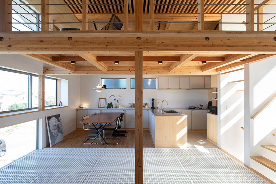 WORKS 施工事例 注文住宅 光の届く家 〜お客様のご要望~ どこにいても明るい家と繋がりのある空間 〜商談・設計上での苦労点〜 繋がりのある空間を設計する上で、離れすぎず・近すぎずの空間構成を熟考しました。 〜商談・設計上での工夫点〜 窓の大きさや、取り付け位置だけでは光が奥まで届きづらく、床にグレーチングを採用しました。 床に樹脂製のグレーチングを使用することにより、床面からの採光ができ、隅々まで明るい室内となりました。 前へ 施工実績一覧へ 次へ その他の施工事例 【混構造・準耐火仕様】サンキホーム㈱ 辻堂東海岸店 商業施設 甘味とごはんや 八一 商業施設 sanki × K ESTATE 6 sanki×K ESTATE